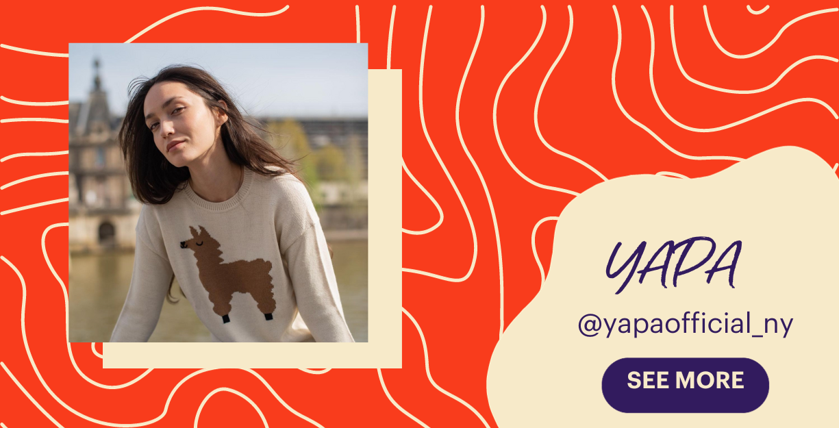 In 2019, Bernarda Pelaez founded YAPA, an alpaca knitwear brand that seamlessly combines style, sustainability, and social responsibility. YAPA’s name is derived from the Quechuan word “YAPA,” which means “to give and to receive.” This reflects Bernarda’s vision to create a brand that not only provides beautiful, high-quality garments but also uplifts the people that produce them.